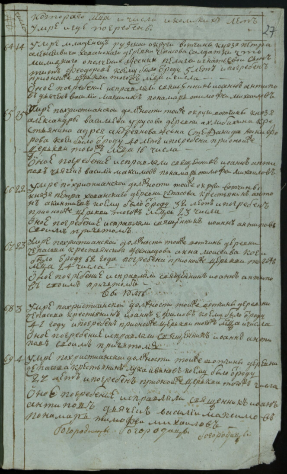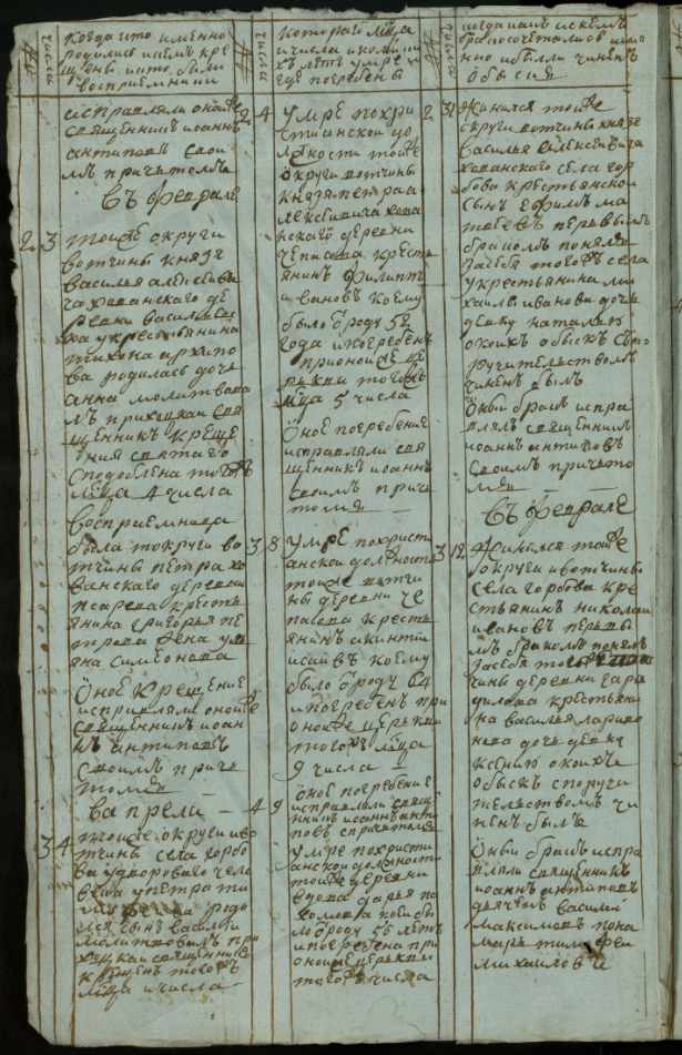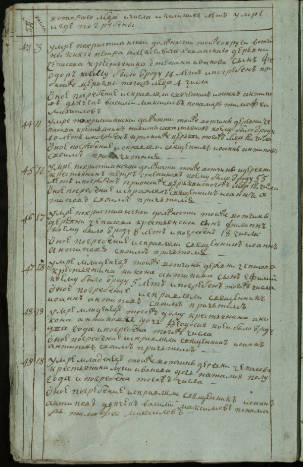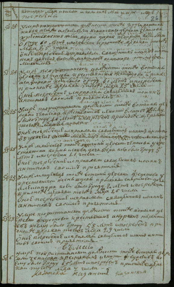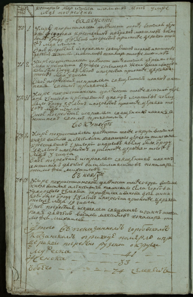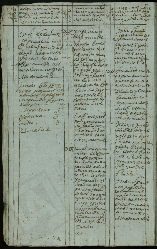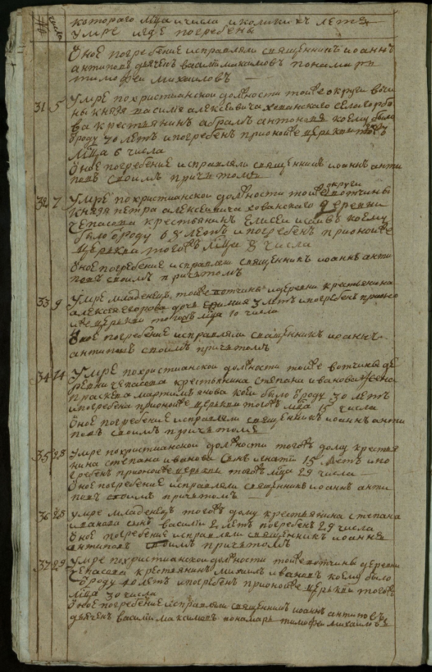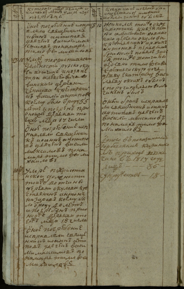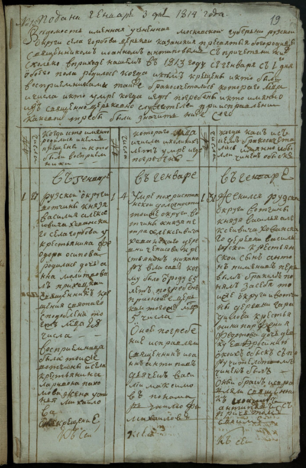 Ведомость именная Рузской округи села Горбова церкви Казанской Пресвятой Богородицы о прихожанах священника Иоанна Антипова с причетники на 1813 год