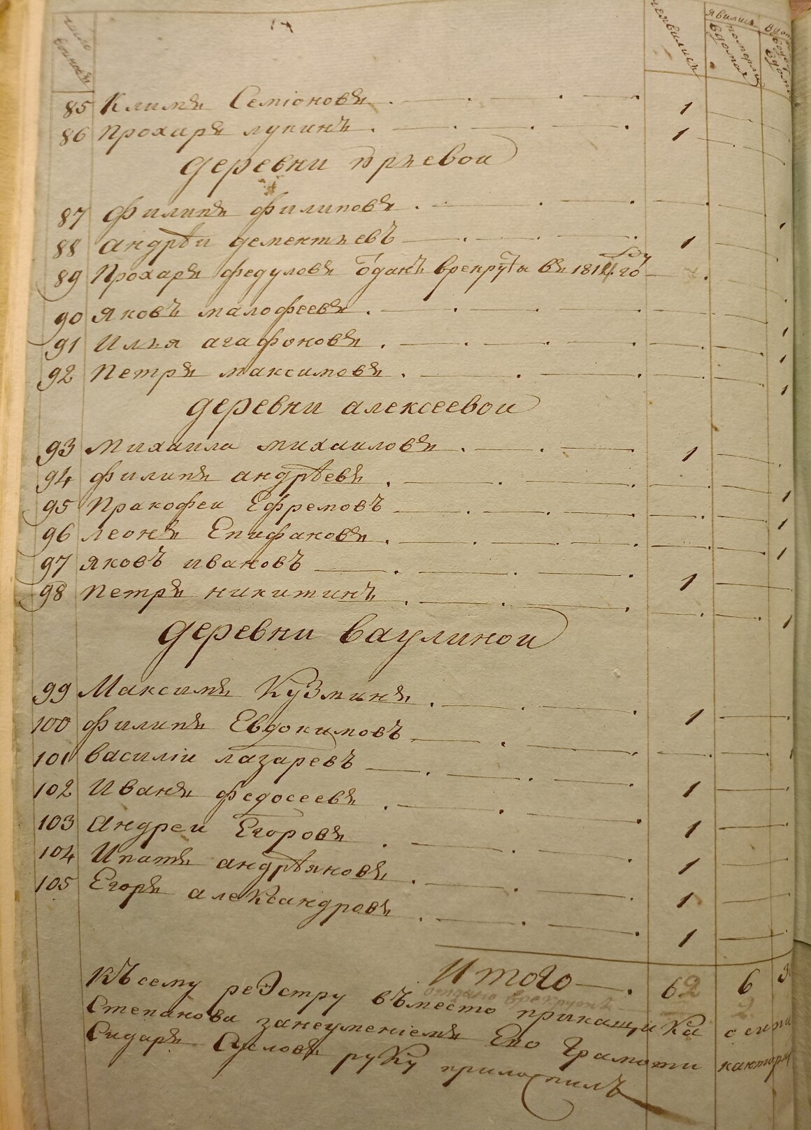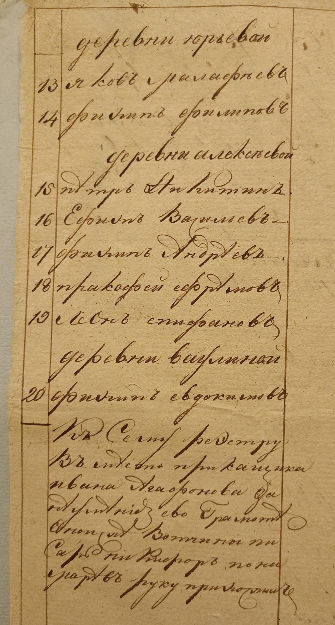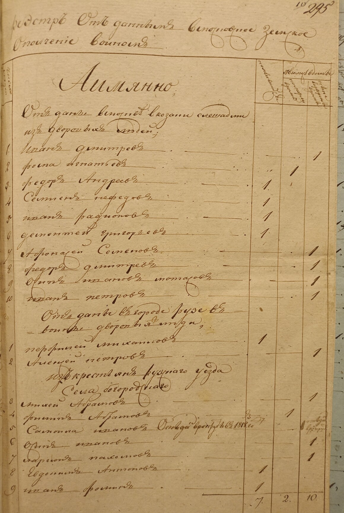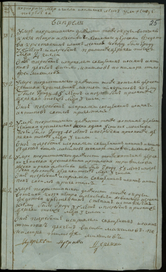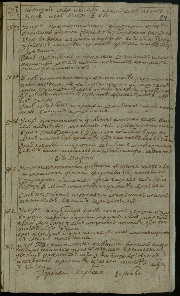 Ведомость именная Рузской округи села Горбова церкви Казанской Пресвятой Богородицы о прихожанах священника Иоанна Антипова с причетники на 1813 год