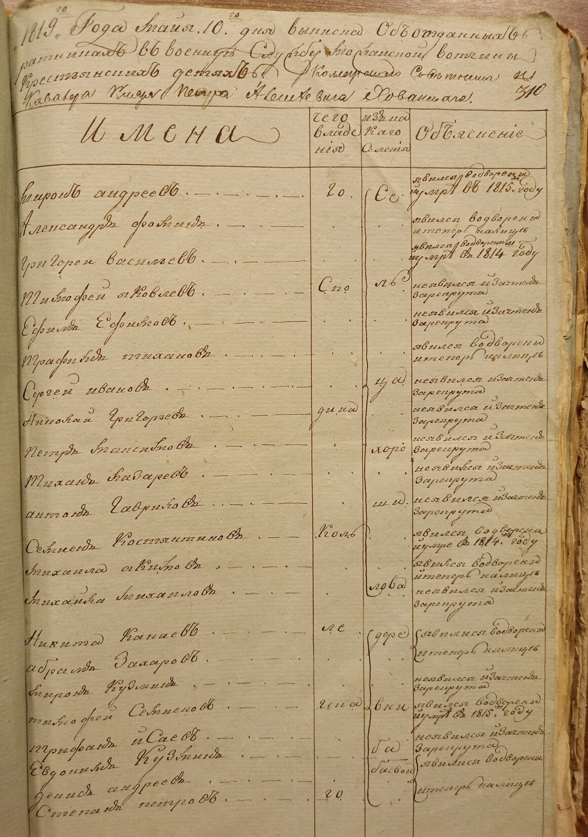 Ведомость о тех священноцерковнослужителях, у коих только одно имение разграблено