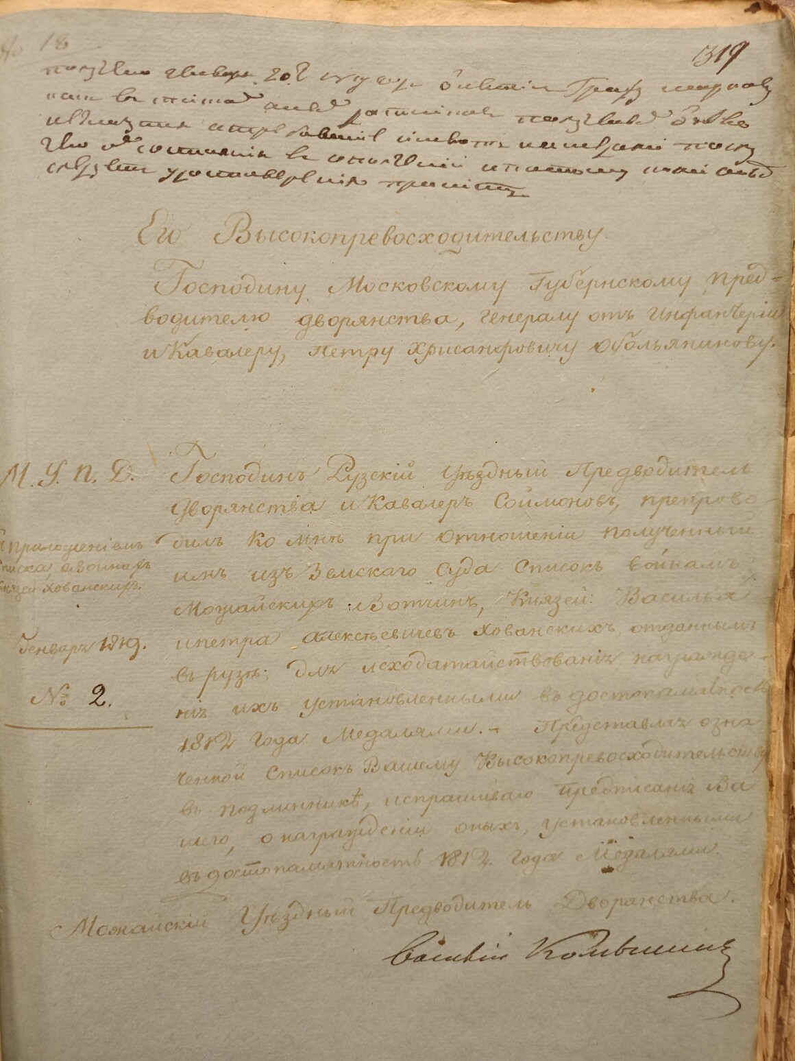 Письмо князя Хованского