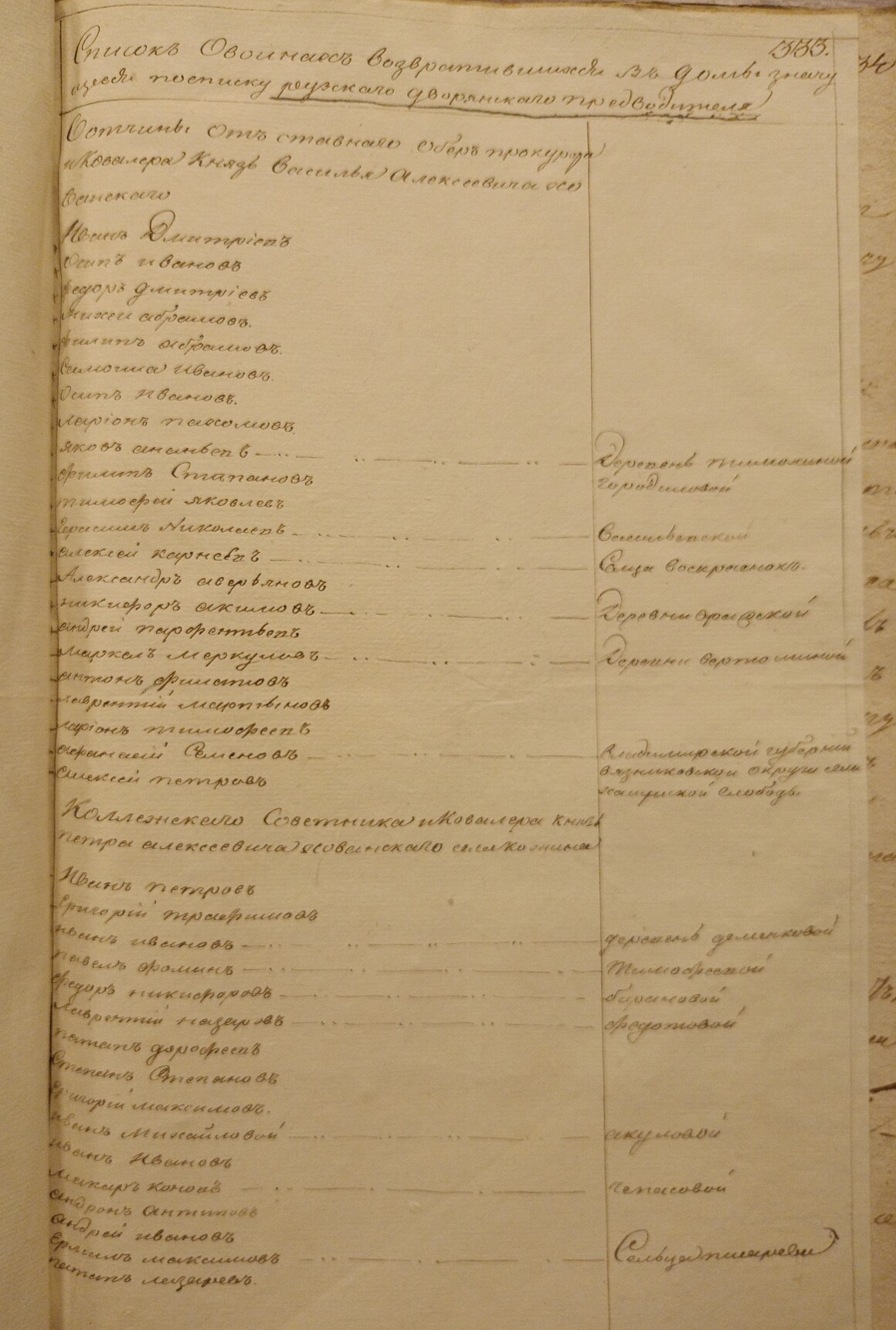 Дело о возвращении в вотчины к своим владельцам
