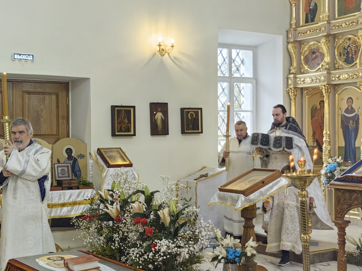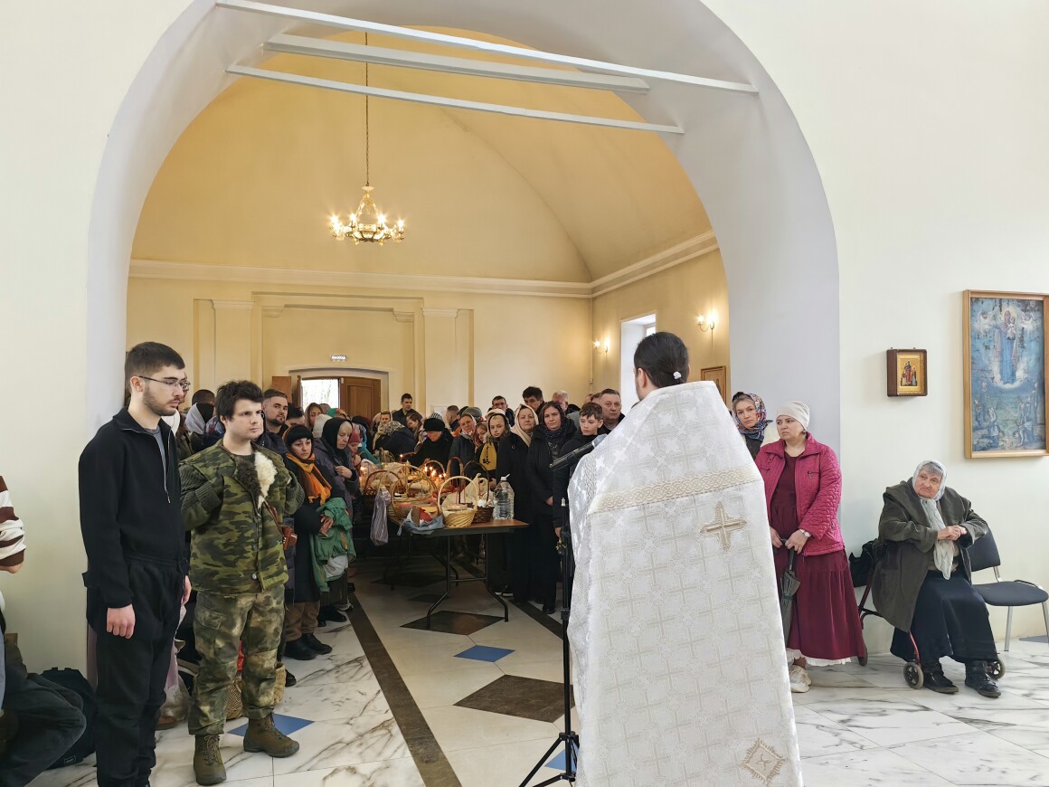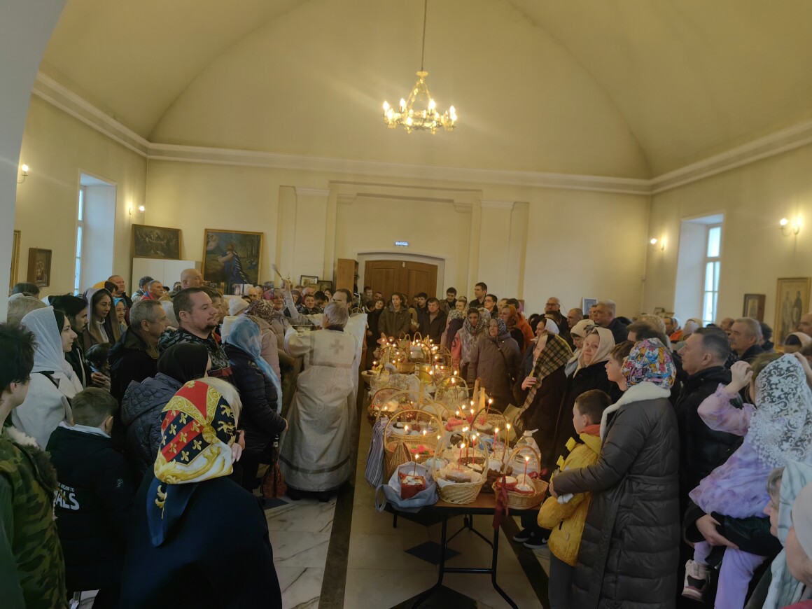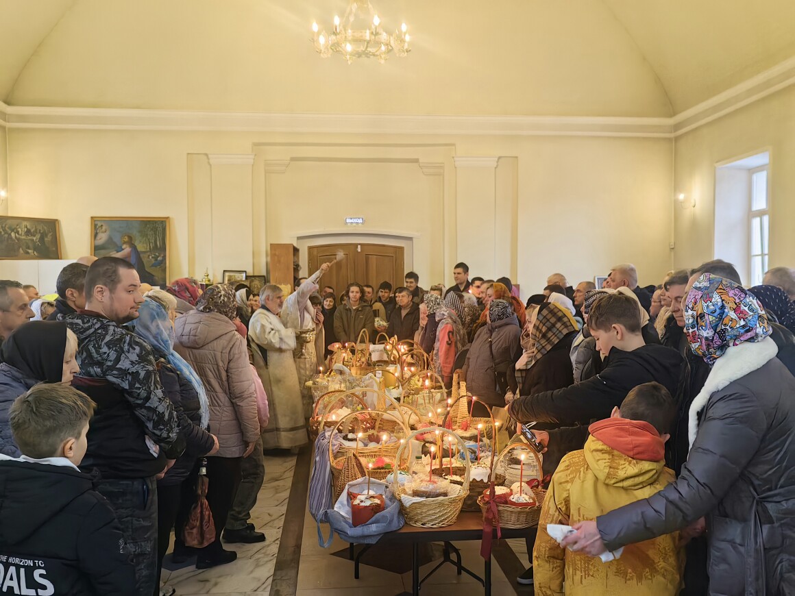В день покоя и предчувствия Воскресения в Казанском храме прошла вечерня с Литургией Василия Великого, завершившаяся освящением пасхальной снеди