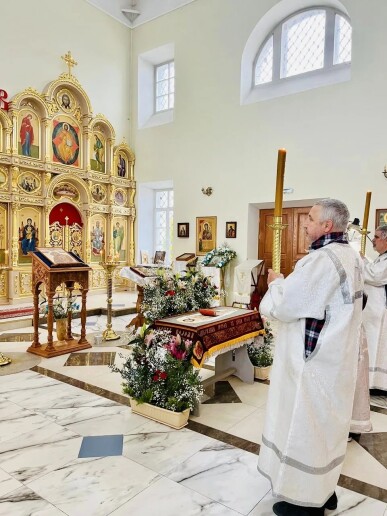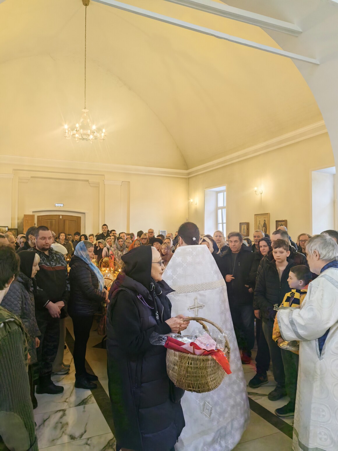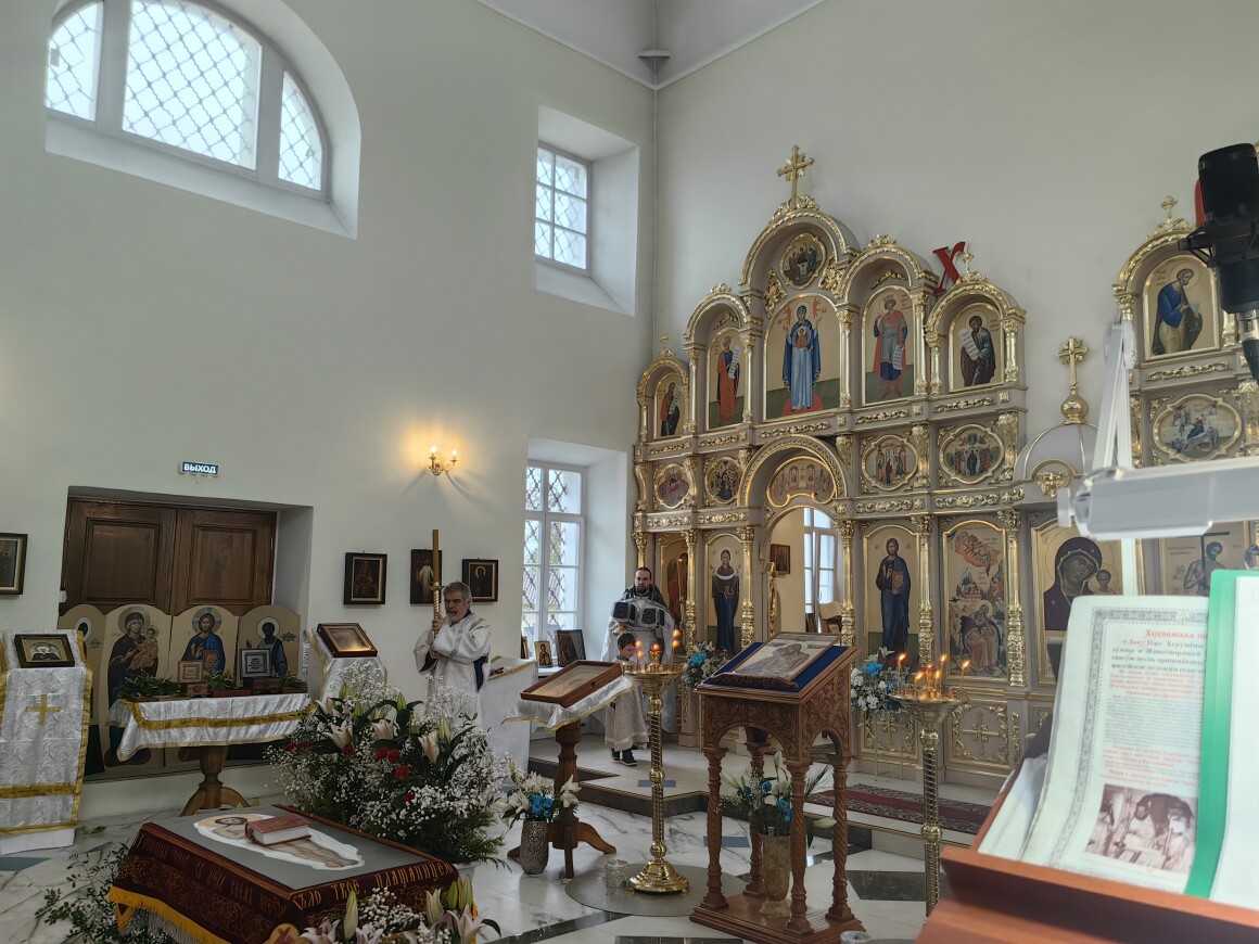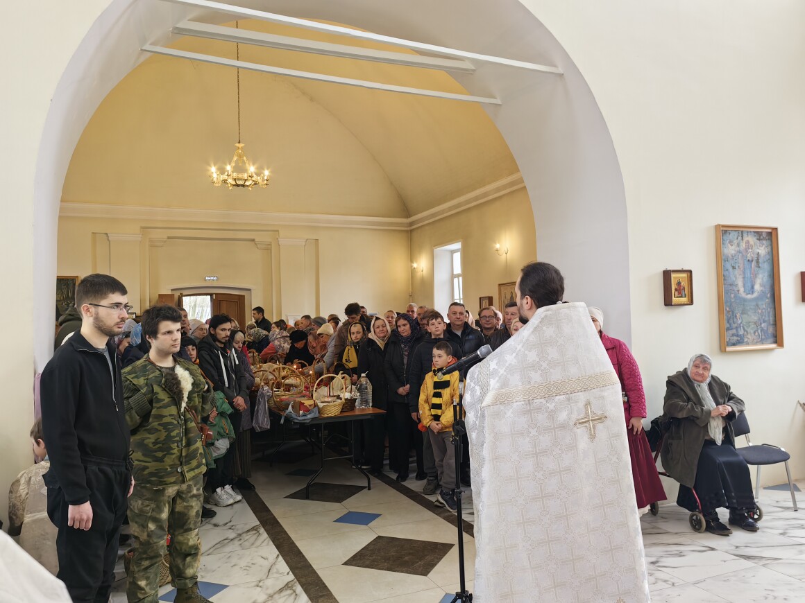 В день покоя и предчувствия Воскресения в Казанском храме прошла вечерня с Литургией Василия Великого, завершившаяся освящением пасхальной снеди