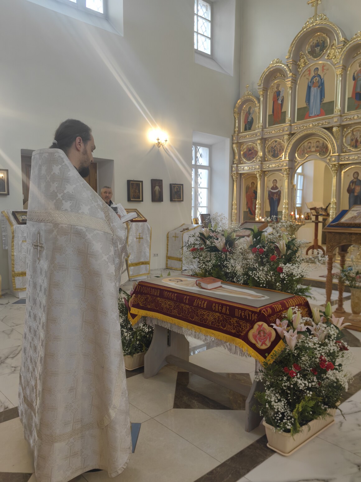 Кульминацией субботнего богослужения стала вечерня, соединенная с Литургией святителя Василия Великого. Это богослужение занимает в церковном году совершенно особое место. Совершаясь в преддверии Пасхи, оно пронизано удивительным сочетанием глубокого покоя и тихой, еще сокровенной, радости. Момент, который запомнился всем присутствовавшим — пение вместо привычной Херувимской песни древнего и величественного гимна: «Да молчит всякая плоть человеча и да стоит со страхом и трепетом, и ничтоже земное в себе да помышляет...». Под эти проникновенные слова, исполненные хором под управлением регента Людмилы Михайловой, храм замер в благоговейной тишине, ибо, по слову песнопения, Сам «Царь царствующих и Господь господствующих приходит заклатися и датися в снедь верным».