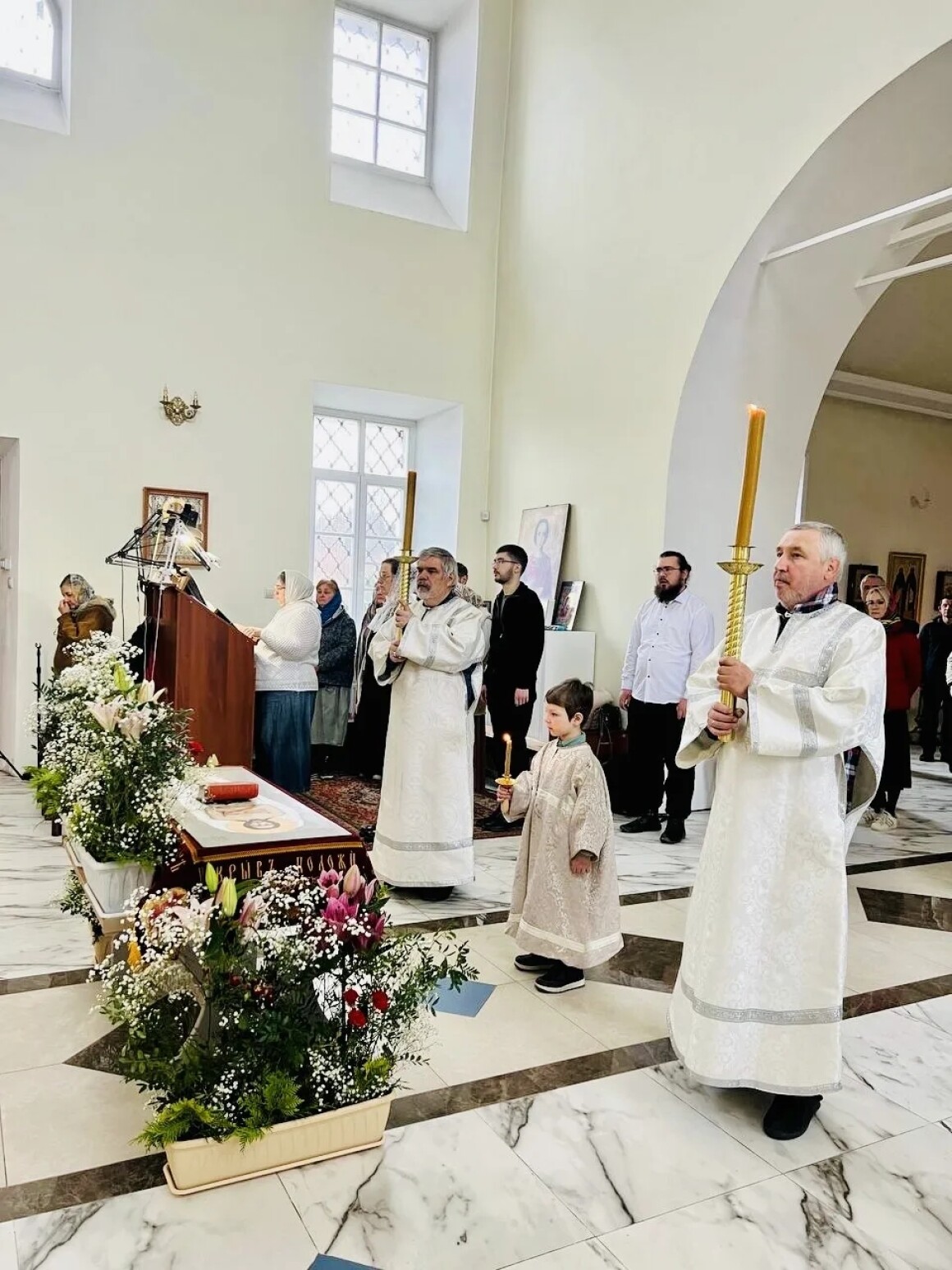 Ключевым моментом, как уже было сказано, становится пение «Воскресни, Боже...» . Эти слова из 81-го псалма звучат как приказ, как властное повеление Сына Божия, обращенное к Отцу, и одновременно как радостное предвозвещение. Именно в это мгновение в храме происходит зримая перемена: черные облачения престола и духовенства сменяются на белые. Это не просто смена цвета ткани — это переход от смерти к жизни, от печали к надежде, который происходит здесь и сейчас, в сердце богослужения.