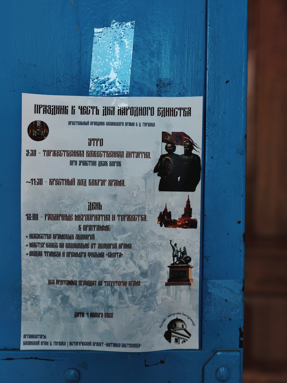 По завершении праздничных богослужений для всех желающих была предоставлена уникальная возможность подняться на колокольню и попробовать себя в роли звонаря. Затем верующие отправились на общую трапезу, во время которой состоялась премьера фильма «Заступница земли Русской» от исторического проекта «Матушка-Заступница». Этот проект посвящён Казанскому Храму и посёлку Горбово.