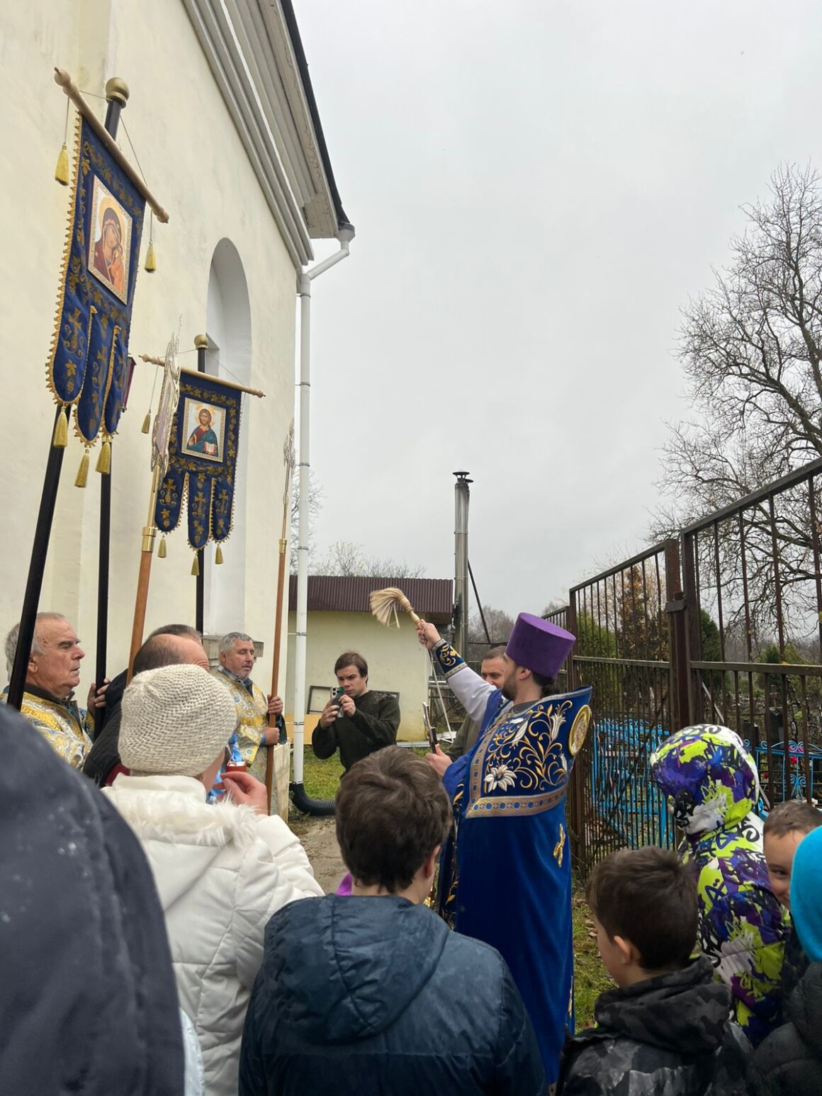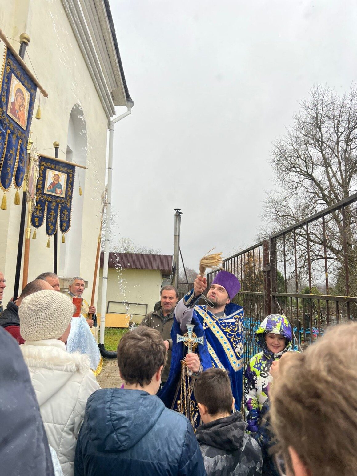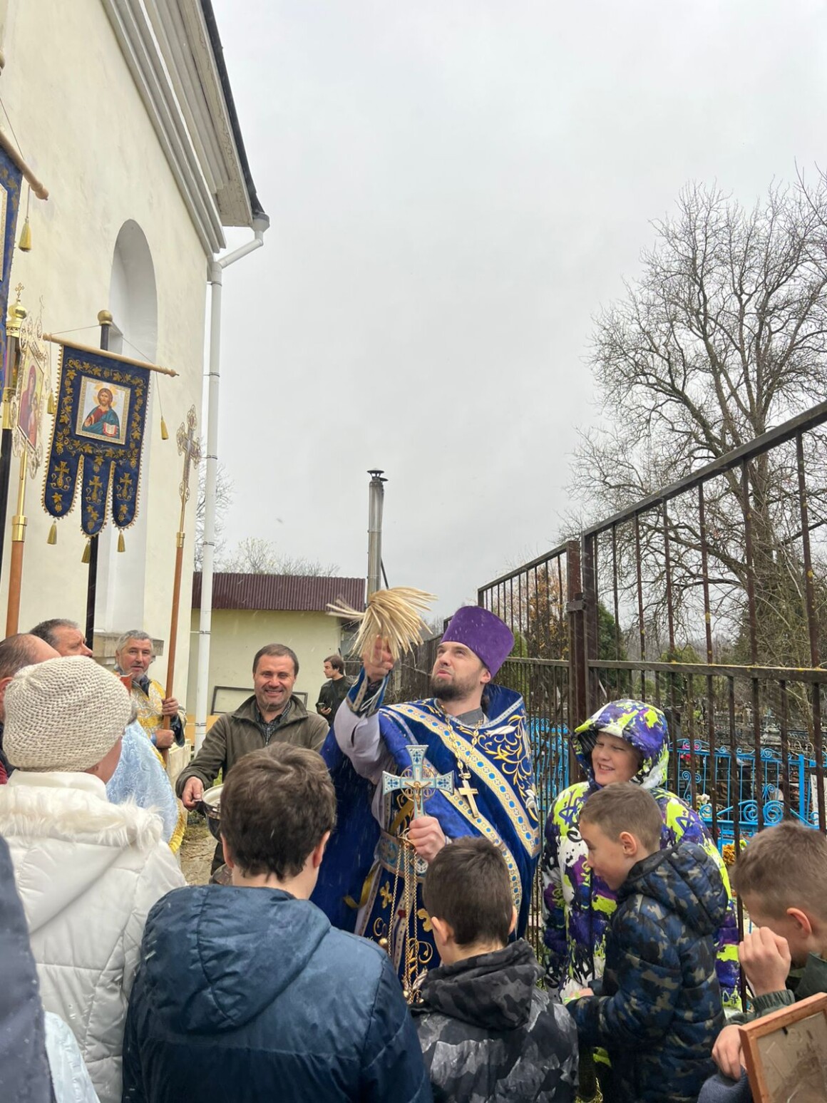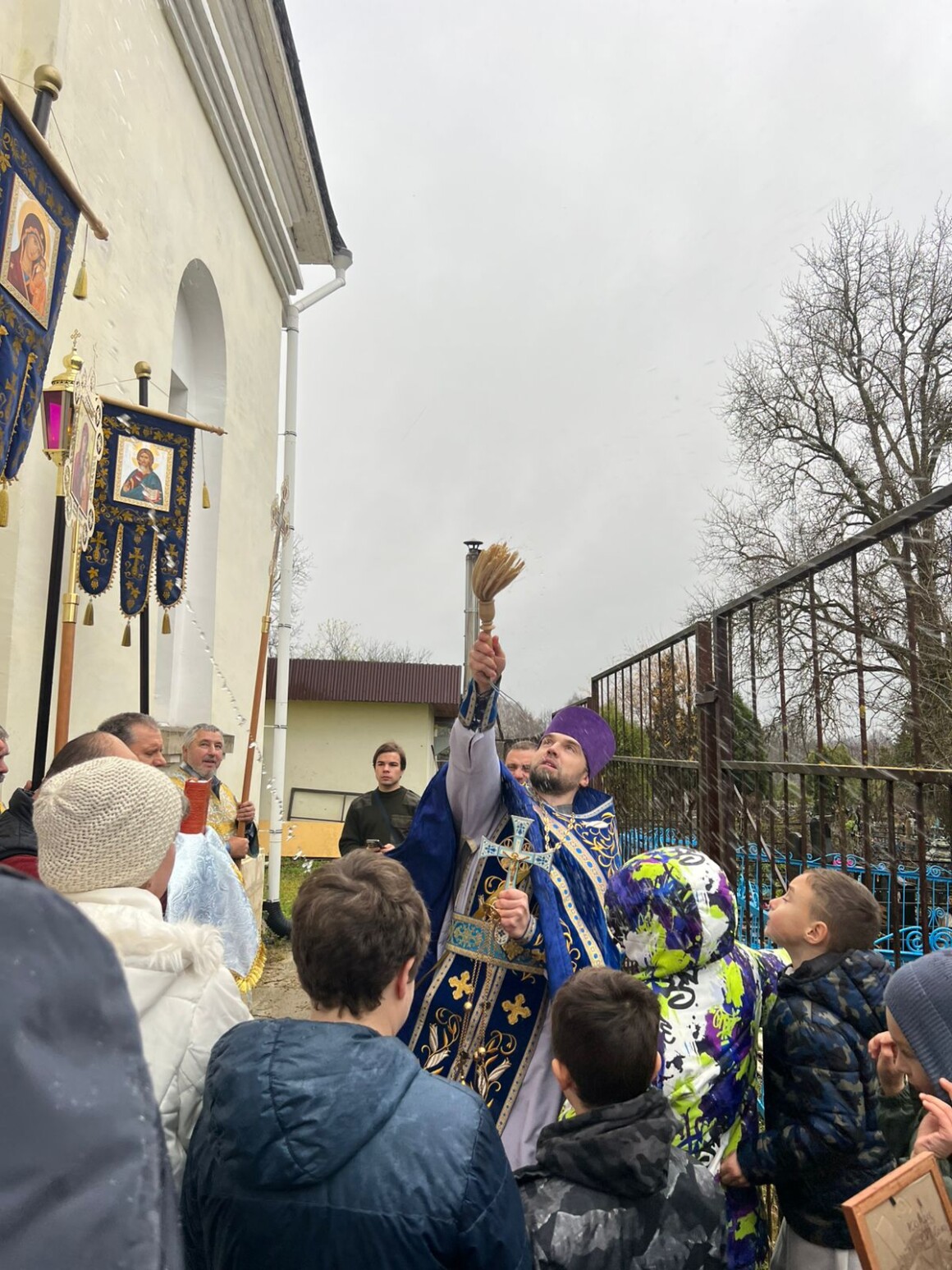 После окончания Литургии духовенство и прихожане совершили крестный ход вокруг храма.