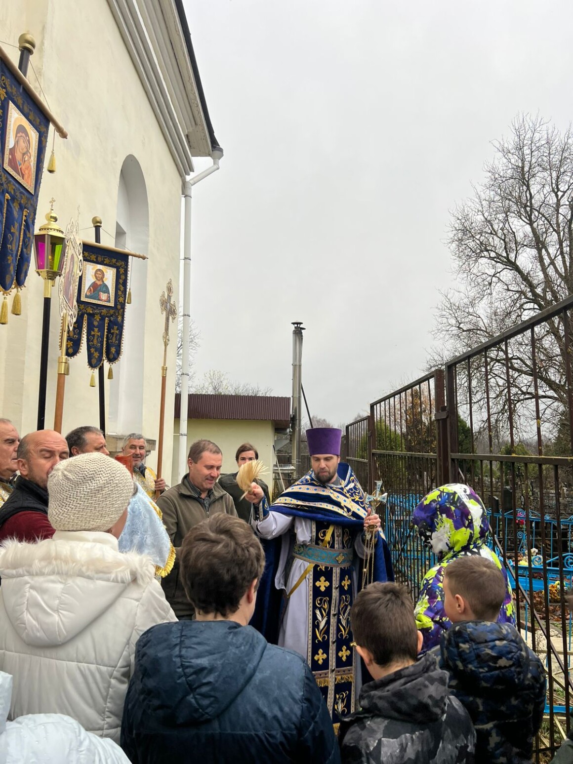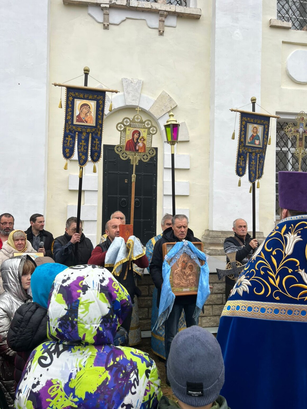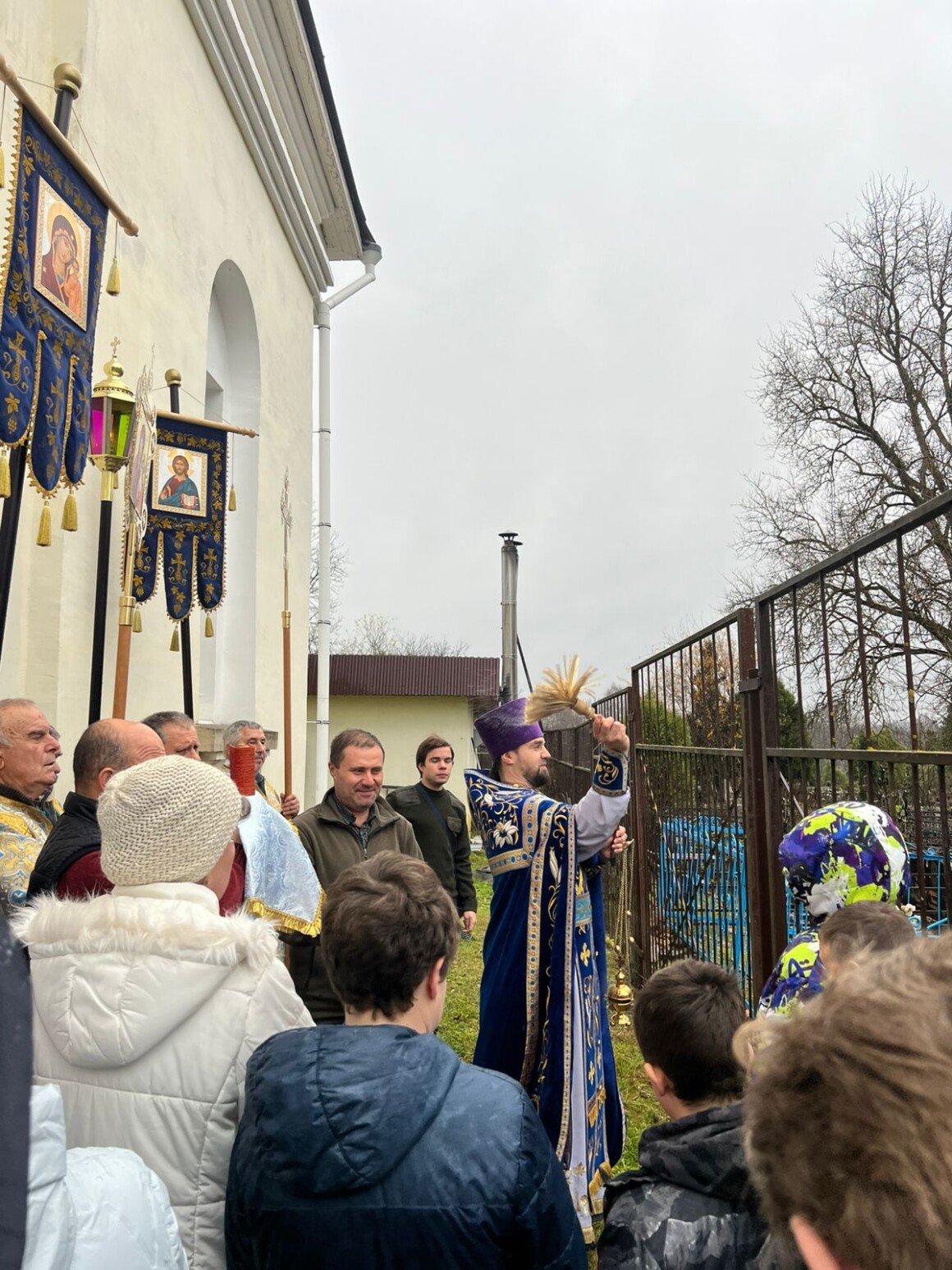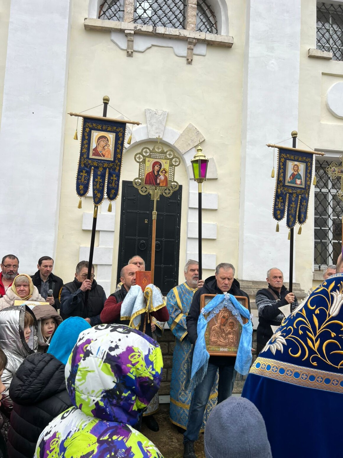 После окончания Литургии духовенство и прихожане совершили крестный ход вокруг храма.