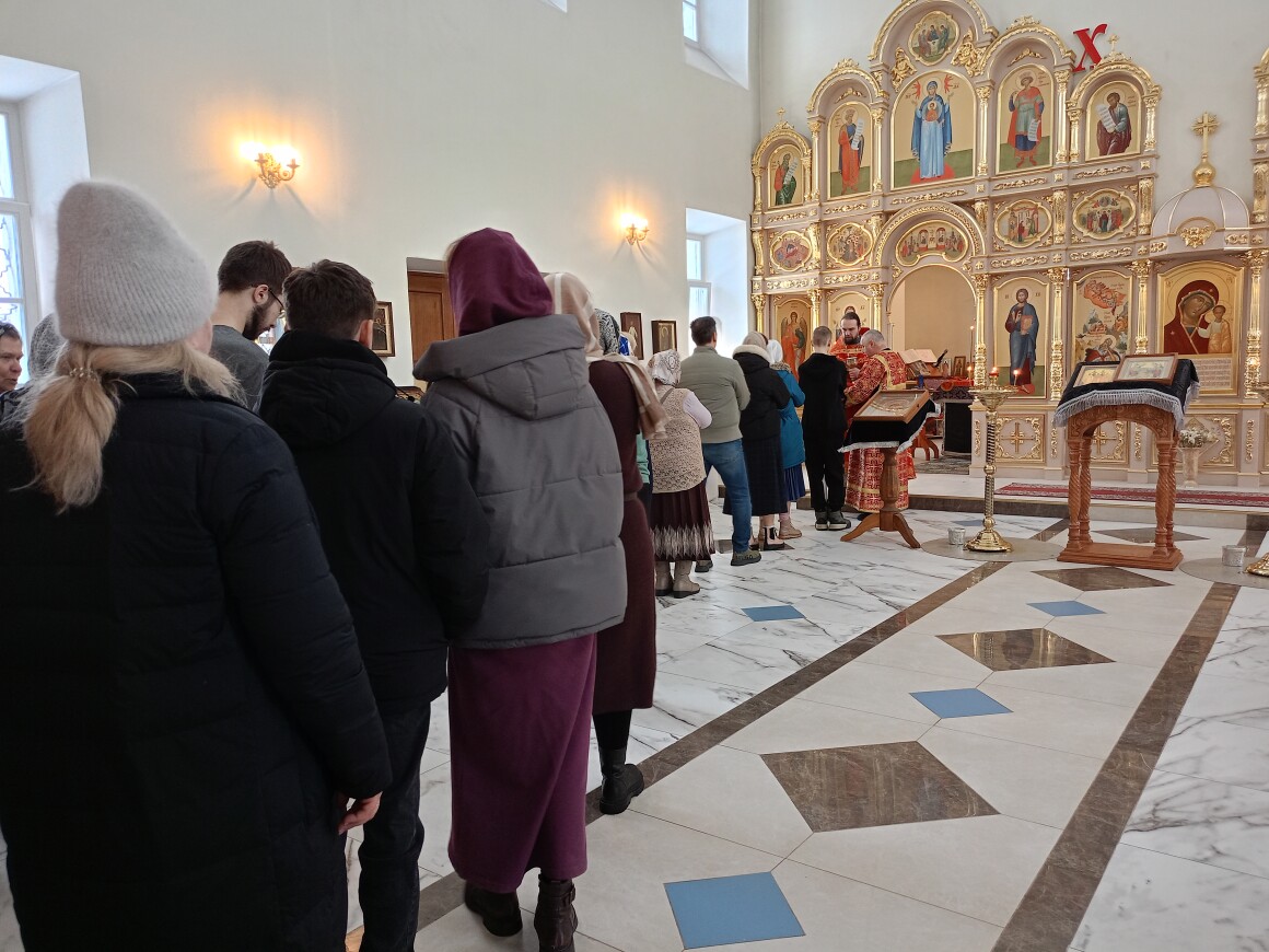 Атмосфера в храме была наполнена великопостной тишиной и одновременно светлой торжественностью. Молитвенное пение и стройное звучание клироса создавали особое настроение, помогая верующим глубже проникнуться смыслом первого воскресного дня Четыредесятницы. Пел храмовый хор под управлением регента Людмилы Михайловой, чей труд помог прихожанам вознести свои молитвы ко Господу