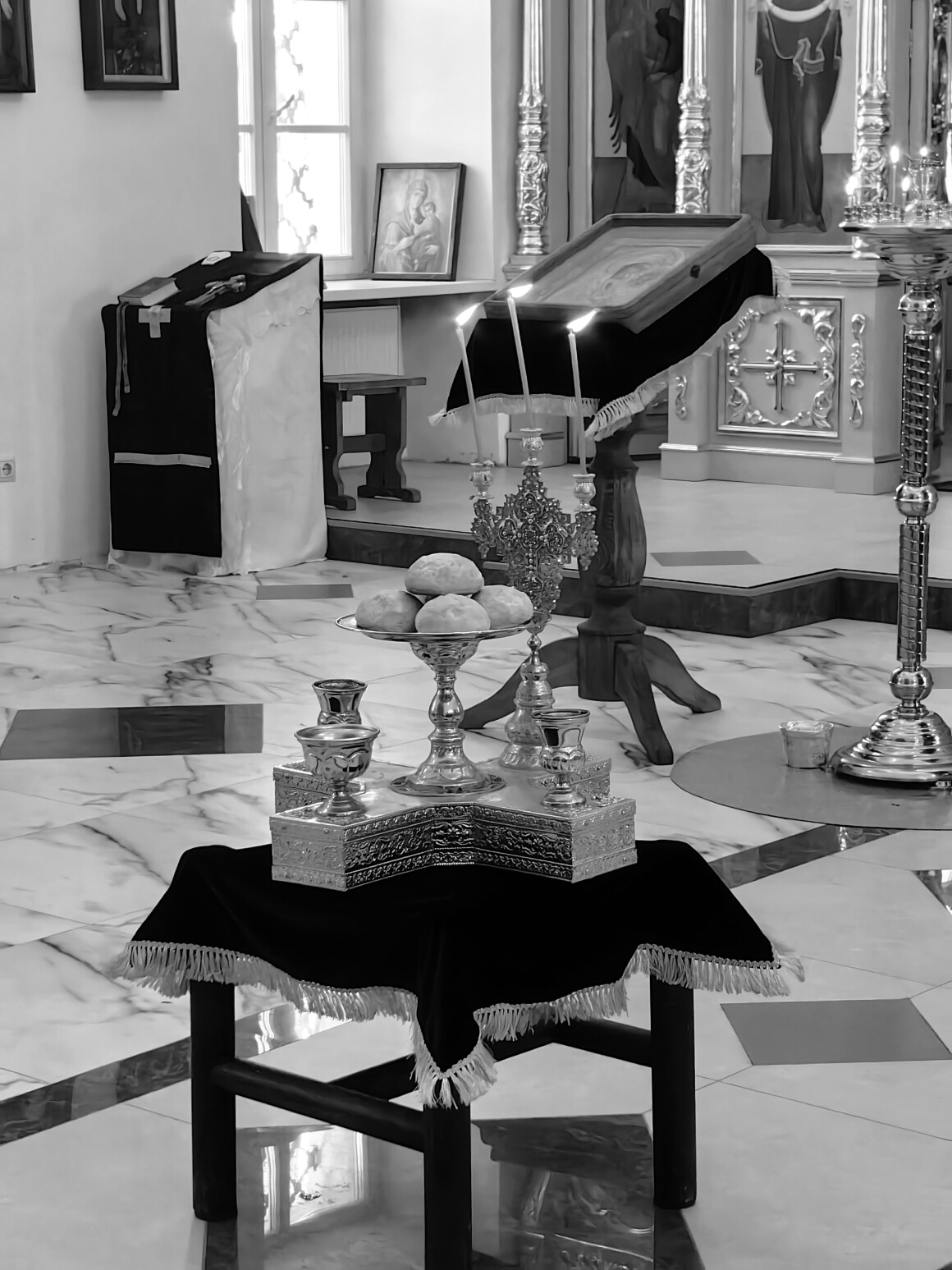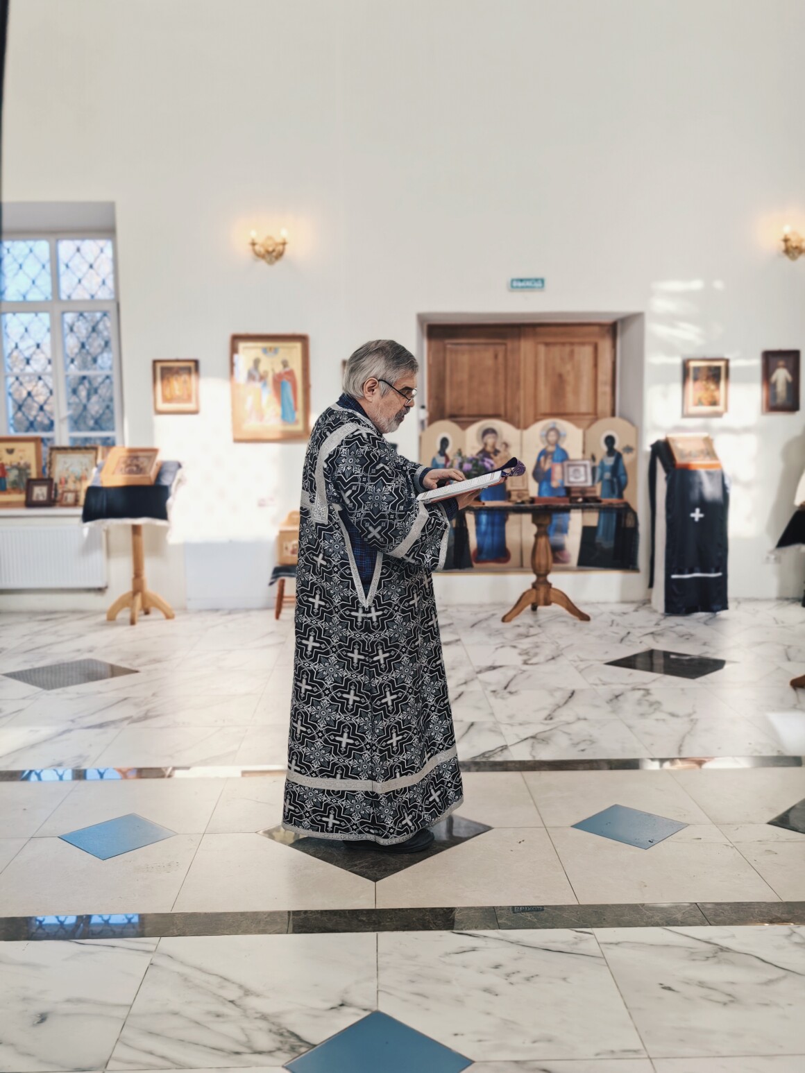 Особенности полиелея и чтения ЕвангелияОбычно на воскресной утрене после пения полиелейных псалмов (134 и 135) священники с зажженными свечами выходят на середину храма. Однако на Крестопоклонной неделе полиелей полностью совершается в алтаре. Там же, в алтаре, читается и Евангелие. Это создает эффект большей сосредоточенности и готовит молящихся к главному моменту — торжественному выносу Креста